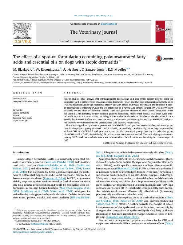 Pdf The Effect Of A Spot On Formulation Containing Polyunsaturated Fatty Acids And Essential Oils On Dogs With Atopic Dermatitis Carola Sauter Louis Academia Edu